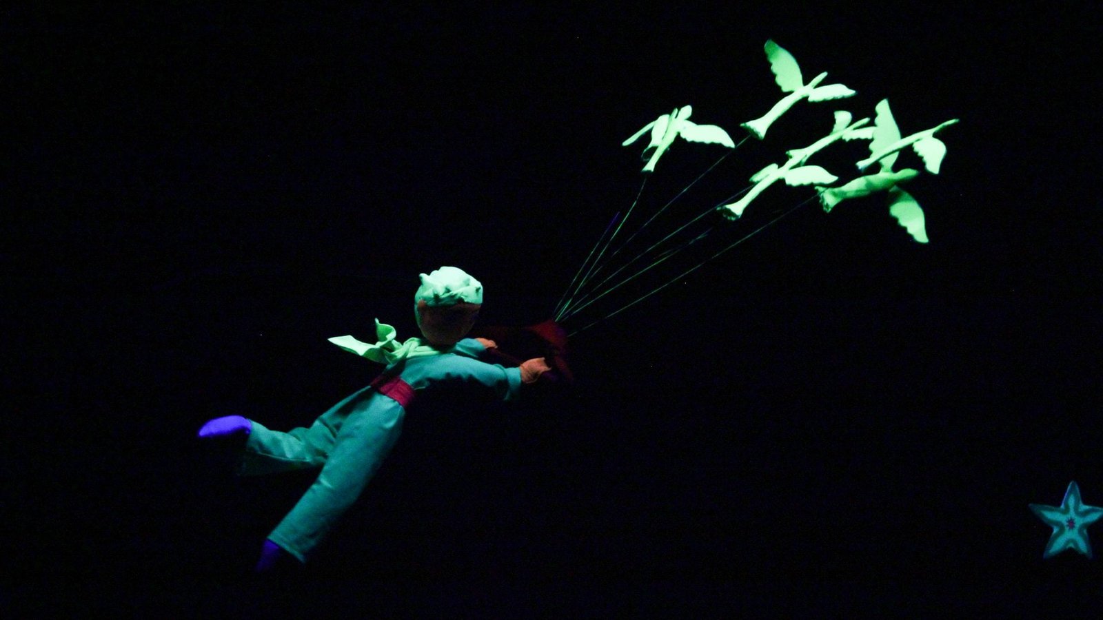 Com direção e adaptação de Ian Soffredini, espetáculo inspirado no clássico de Antoine de Saint-Exupéry mistura a presença de atores com bonecos e utiliza técnica de teatro com luz negra.